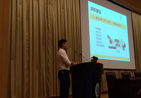 9月17日下午材料院于圖書館報告廳組織召開了就業指導講座。就業中心主任肖友平老師和大學生生涯發展規劃中心教研室羅興婭老師以及材料院輔導員馬潔老師出席了此次講座。肖友平老師和羅興婭老師從就業資源、就業渠道、面試技巧等方面對材料院大四學生全方位的指導。