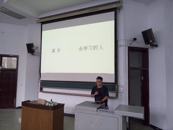 大會第二個議程——15級材科材控大三第一學期年級大會。此次大會的主題為——做一個有溫度的年輕人。大會伊始,張老師邀請15級材控創新班唐譽豪同學上臺分享自己的故事。唐譽豪同學分享的內容為——如何成為一個高手。唐譽豪同學通過“一萬小時定律 ”引出高手是會學習的人,并且要合理運用時間,達到最高效的學習。之后他提出學習的三個區域,舒適區、學習區和恐慌區。“現在的知識,在此之前我們沒有任何基礎,在一定程度上是讓我們“恐慌”的。但是在恐慌的前面還有學習這一過程,需要通過不斷地學習消滅這種恐慌。”唐譽豪同學說到。最后唐譽豪同學希望能和大家共勉,在大三努力學習,逐步完成自己的目標。