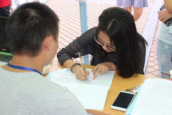 17級新生劉寧接受采訪時說道:“謝謝學校和學院領導老師及同學的幫助。雖然我離開了自己的家,但一下車就看到熱心的志愿者上來幫忙提行李,報到的時候還一遍遍地給我們講解報到流程,天氣這么炎熱,看到他們汗流浹背的,心里面還是挺感動的。我希望能夠盡快融入材料院這個大家庭,也希望能夠在老師同學間汲取知識經驗,多多加入社團,鍛煉自我。”