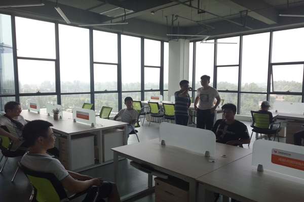 首先,在前臺小姐的引領(lǐng)下,我們參觀了蜂云谷創(chuàng)新創(chuàng)業(yè)辦公大樓。4樓是創(chuàng)新創(chuàng)業(yè)基地,站在門口,左手邊是員工的辦公桌,兩長排設(shè)備齊全的辦公桌大大提高了員工們的工作效率;再前方就是經(jīng)理的辦公室,用圓球狀的玻璃與外面分開,此設(shè)計不僅提高了美感,還能激發(fā)靈感;右手邊是檔案室,前面是茶水間,在大廳,擺放著不一樣的會客桌,由三個小五邊形拼接而成,這就是創(chuàng)新的元素。