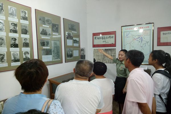 隨后,隊員們跟隨講解員來到了長征時期毛澤東主席居住的農家小院,小院內花草繁茂,兩排小屋分開坐落在左右。走進毛主席居住過的小屋,屋內陳列極其簡單:一張土炕,上面一張小桌,桌子上面放著一盞老油燈,這便是那時的生活設施。隊長李鵬飛不禁感嘆道:“那時的生活條件確實艱苦,沒有他們,或許我們就不會有今天的幸福生活?!标爢T們也有同樣的感慨:“先輩們英勇頑強、不怕犧牲,走過的那二萬五千里,是我們的驕傲,我們要傳承這種精神,珍惜現在來之不易的生活?!蹦嵌渭t色記憶,將永遠被我們銘記!