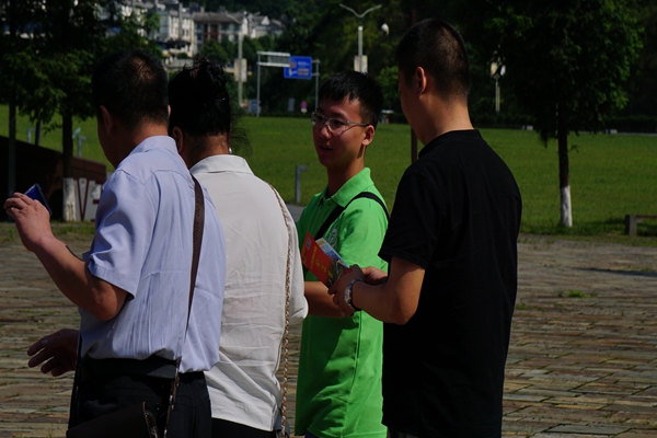 當日下午,在隊員們對紀念館有一定的了解后,隊員在紀念館口對參觀紀念館的群眾發放紀念館的相關資料,并對參觀者進行一定的引導和介紹。