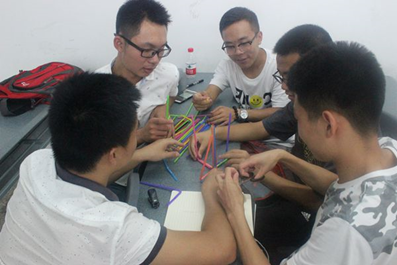 課程第二部分,創新思維訓練。同學們以五人為一小組,需要在三十分鐘內,將吸管搭建成一個結構穩定、外型美觀的塔的形狀。在組內成員思維的不斷碰撞下,每個小組都在規定時間內交出了自己的作品。課程結束后,同學們需要提交一份電子檔詳細闡述他們作品體現出來的創新思維,這既是一份考察他們學習情況的作業,也將是今后創新路上的借鑒。