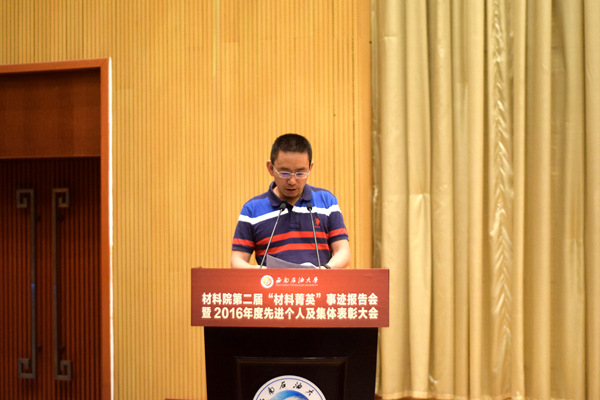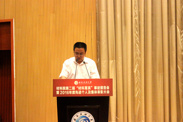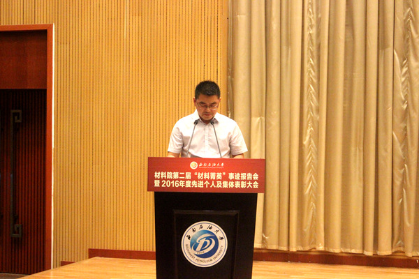 為進一步發揮榜樣示范、引領、輻射作用,全面促進學生成長成才,5月18日19時,材料院第二屆“材料菁英”事跡報告會暨2016年度先進個人及集體表彰大會于圖書館報告廳圓滿舉行。材料院黨委書記鄭世文、林元華院長、黨委副書記戴志、副院長王斌、光伏產業技術研究院兼材料院副院長范翔宇、院工會主席何顯儒以及各教研室、科研主任,全院師生代表出席了此次大會。