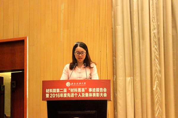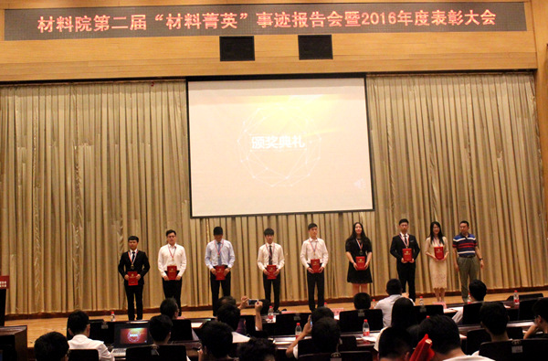 隨后,“材料菁英”教師代表王芳老師發言,材料院黨委副書記戴志老師宣讀《材料院關于表彰“材料菁英”及2016年度先進個人和集體的決定》,并由學院領導為獲獎學生頒獎。
