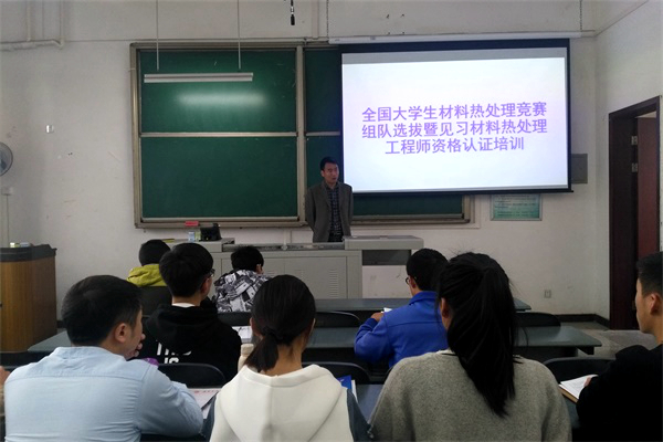 王書亮老師在開班儀式中講道:“在中國熱處理學會的支持下,我院已成功舉辦了兩期‘全國見習材料熱處理工程師資格考試培訓班’,并順利完成考試及認證相關工作。開設培訓班的第一目的是發現和推薦我校材料熱處理卓越人才,培養新一代材料熱處理工程師;也旨在選拔學生參加‘全國大學生材料熱處理競賽’,讓你們有平臺展示個人熱處理理論和應用水平。”