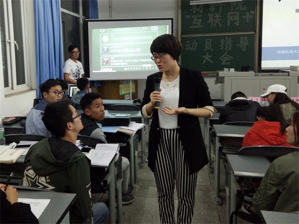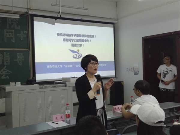 隨后,來自校雙創中心的李媛媛老師為大家詳細介紹了“互聯網”+大賽的比賽流程,并且引用上一屆互聯網加大賽同學們的獲獎情況,為我們介紹了互聯網加大賽的往屆歷史,讓同學們對于“互聯網+”大賽有了一個初步的了解。隨著國家經濟的發展,互聯網思維在社會中的不斷強化與重視,各高校的比賽項目也逐漸成熟,“互聯網+”大賽的規模,影響力在這三年內不斷擴大,各高校的比賽團隊也越來越強大,大賽也逐漸吸引了越來越多的投資商的支持與參與。西南石油大學也緊跟國家號召,積極參賽,而材料院憑借著深厚的科研底蘊,在第二屆“互聯網+”大賽取得了國賽兩銀一銅的好成績。