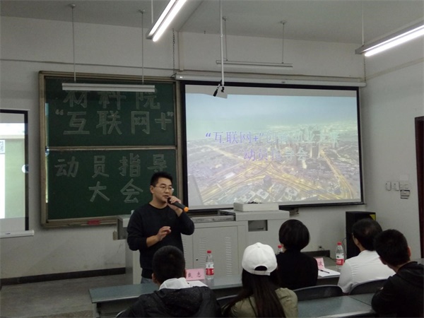 5月5日,材料院“互聯網+”大賽動員指導會在明德樓A403成功舉辦。本次指導會由材料院創新創業俱樂部(以下簡稱雙創)主辦,到場的嘉賓有材料院黨委副書記戴志老師,校雙創中心李媛媛,材料院雙創指導老師陳建波,“互聯網+”大賽參賽人員,以及雙創會員和材料院各專業年級的同學們。
