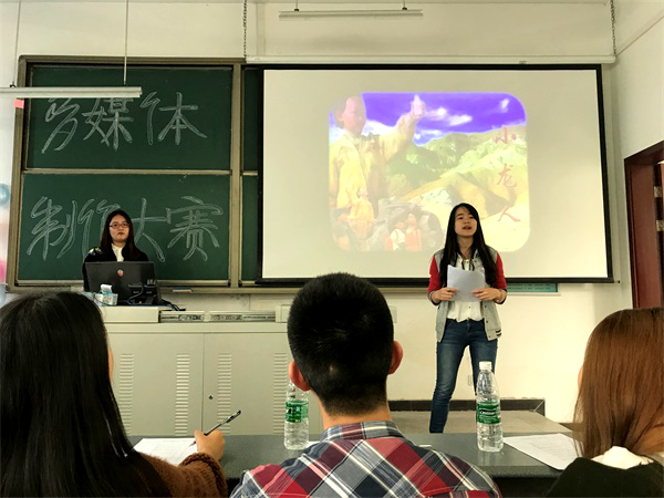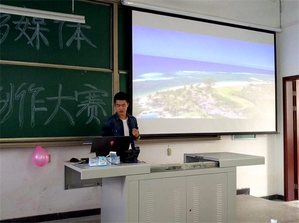 比賽過程中,選手們用多媒體做載體,講述了他們的青春和夢想。鄭永峰、王苪柯利用Focusky(是一款新型多媒體幻燈片制作軟件,操作便捷,演示效果超越PPT,主要通過縮放、旋轉(zhuǎn)、移動動作使演示變得生動有趣)帶來了不一樣的視覺體驗。李玥、劉佩采用制作動畫的形式,生動的向我們展示了她們的《少女時代》,贏得了評委的一致好評。杜明梟靈活地運用了各種ppt制作技巧,顏色層次分明,布局大方得體,為我們講述青春的感悟,訴說他的故事。青春也是一場場的旅行,15級高分子專業(yè)宋卓倫利用一張張照片順序播放的形式,向我們講述了旅行的經(jīng)歷。