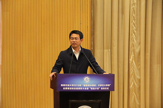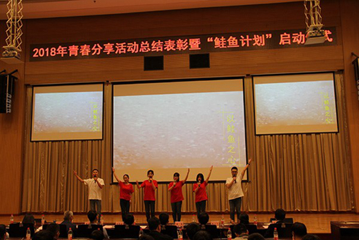 西南石油大學2018年“青春分享”活動總結表彰暨“鮭魚計劃”啟動儀式于4月15日19:30在圖書館學術報告廳舉行,本次活動由招生就業處主辦,材料科學與工程學院承辦。西南石油大學黨委副書記趙正文,宣傳部、統戰部部長易聯樹,學生工作部(研究生工作部)部長蒲勇,校團委書記夏艷,教務處處長黃健全,招生就業處副處長張敏,校友總會、教育發展基金會副秘書長劉恒,馬克思主義學院院長張小飛,材料科學與工程學院院長周瑩出席現場,全校學生代表參與活動,學校黨委副書記趙正文宣布“鮭魚計劃”正式啟動。