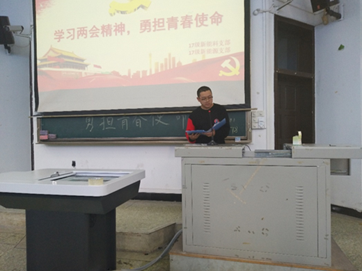 2018年4月,材料院組織開展“學習兩會精神,勇擔青春使命”主題班會,此次班會旨在宣傳、貫徹兩會精神,鼓勵學生勇擔時代使命,爭做時代弄潮兒。