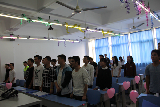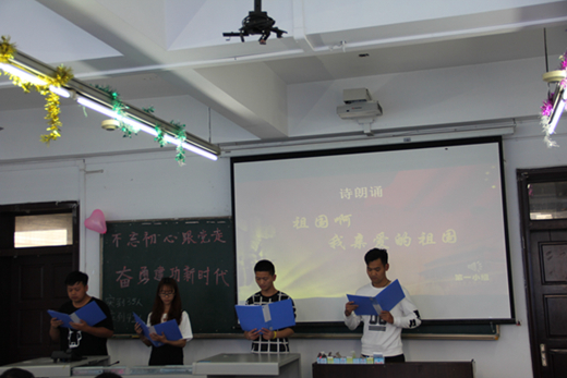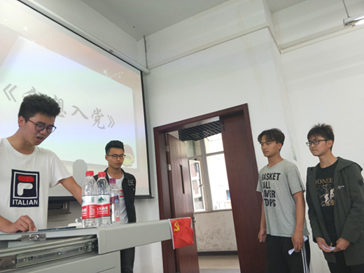 材科專業(yè)四個團(tuán)支部合辦的團(tuán)組織生活中,小品《我想入黨》,同學(xué)們用精湛的演技將這個故事活靈活現(xiàn)地表現(xiàn)出來,“黨支書”對三個“預(yù)備黨員”進(jìn)行考核,雖然三位“預(yù)備黨員”出現(xiàn)了一點(diǎn)失誤,但是“黨支書”依然從他們的表現(xiàn)中看到共產(chǎn)主義信仰,最終三位預(yù)備黨員通過考核,成功入黨。表演結(jié)束,同學(xué)們自發(fā)為他們鼓掌,感謝他們的精彩演出。演唱歌曲《我的中國心》,感人至深,到最后所有同學(xué)們都加入了唱歌陣營,會議現(xiàn)場的愛國氣氛十分濃厚。