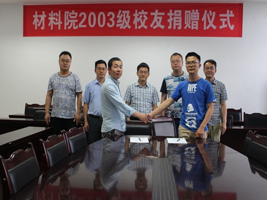 5月18日,我校材料院2003級校友樊秀平回歸母校,應(yīng)學(xué)校號召對校捐贈。捐贈儀式于下午4:00在明德樓舉行。03級校友樊秀平、啟邁能源科技成都有限公司經(jīng)理謝煒杰、學(xué)校校友基金會朱原老師、材料院院長周瑩、副院長王平、團(tuán)委書記田合超、教授王斌出席了本次活動,我院15級、16級高分子學(xué)生代表參加。