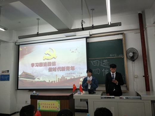 會議伊始,主持人向同學們解釋了“四進四信”的具體含義和內容。“四進四信”分為兩部分“四進”和“四信”?!彼倪M“即進支部、進社團、進網絡、進團課”,“四信”即牢固樹立對黨的科學理論的信仰、堅定走中國特色社會主義道路實現“中國夢”的信念、增強對黨和政府的信任、增進對以習近平同志為核心的黨中央的信賴。班會播放了與此相關的視頻來具體闡釋“四進四信”的深刻內涵。