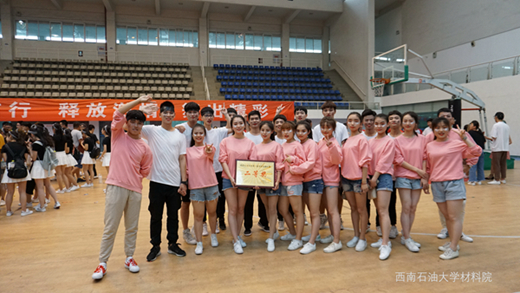 為響應(yīng)國家體育總局“陽光排舞進校園”活動,5月24日下午,西南石油大學(xué)首屆排舞比賽于成都校區(qū)體育館隆重舉行,材料院舞蹈團在激烈的比拼中,奪得二等獎。