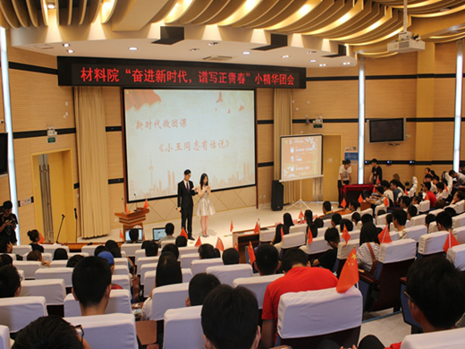5月24日下午3點半,材料院“奮進新時代,譜寫正青春”小精華團會于思學樓A114成功舉辦。此次團會將新時代十九大精神與新時代青年責任相融合,以微團課、詩朗誦以及歌曲的形式展現。校團委素質教育辦公室嘉賓付相宜、院團委書記田合超、院團委副書記祝靜思出席此次活動,17級學生代表參加。