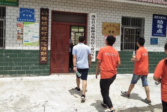7月15日,西南石油大學“公益眾扶”暑期實踐隊歷經4個小時的車程終于到達了四川省南充市蓬安縣鵝項頸村,受到了西南石油大學駐村“第一書記”陳維的熱情接待。
