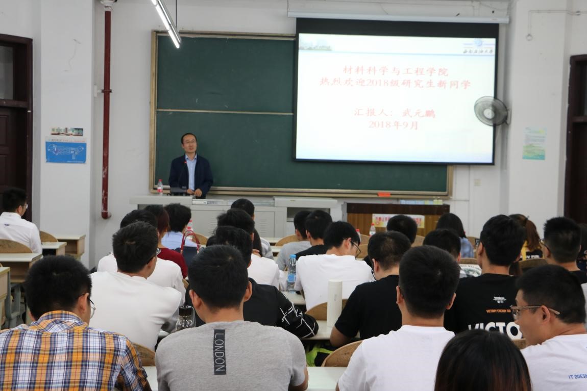 9月18日下午4點(diǎn)30分,材料科學(xué)與工程學(xué)院在思學(xué)樓A111舉辦了2018級研究生開學(xué)典禮暨院長一堂課。材料院黨委書記黃志宇、副院長武元鵬、光伏產(chǎn)業(yè)技術(shù)研究院副院長于華、各教研室主任、教師代表以及2018級全體研究生出席典禮,典禮由材料院團(tuán)委書記田合超主持。