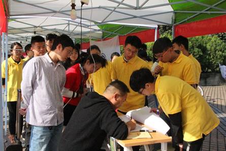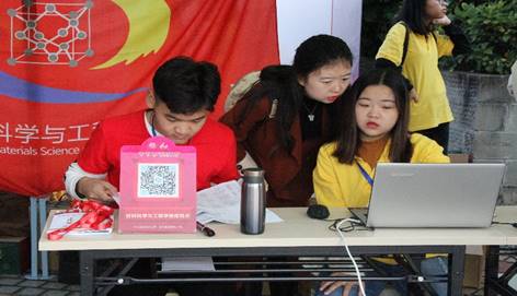 11月30號我們準備就緒,接待校友,早上九點半,第一批志愿者們就開始布置博學廣場的材料院接待點,等待著校友們的到來。在創(chuàng)業(yè)廣場我們舉著材料院院牌引領校友到博學廣場簽到,博學廣場接待處紙質(zhì)簽到,電子簽到,發(fā)放紀念品,簽名留念拍照,帶校友參觀校園這些步驟有條不紊的進行,期間材料院的老師們一直在指導我們,一起從事志愿活動。