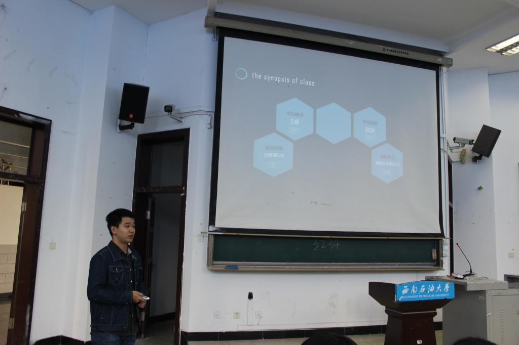 馬潔老師首先提醒英語四六級,以及一些科目期末考試的來臨,督促大家要認真復習,誠信應考,努力提升自我能力。隨后馬潔老師回顧了同學們在大二學年初的表現,并對寢室的表現提出表揚,但強調同學之間一定要注意歸寢情況,保證彼此的安全,提出“24小時上報制”,說道:“一但連續24小時沒有見到他,一定要向我報告!”此外馬潔老師從班級建設和自我建設,分別講了進德修業、十佳班級的選評情況和學生干部、普通學生應盡的責任。接著馬潔老師從她自己的親身經歷說起,詳談個人理想、個人規劃、個人夢想與個人追求。
