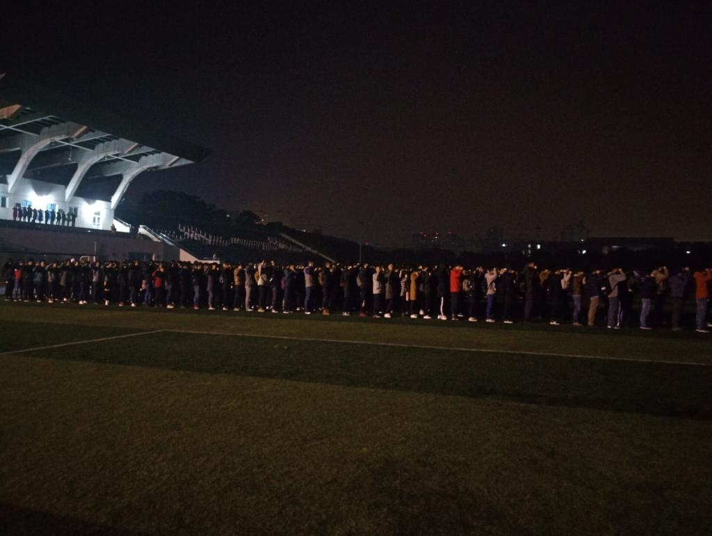 全體老師和同學面向國旗莊嚴宣誓:“忠于中華人民共和國憲法,維護憲法權威,履行法定職責,忠于祖國、忠于人民,恪盡職守、廉潔奉公,接受人民監督,為建設富強民主文明和諧美麗的社會主義現代化強國努力奮斗!”