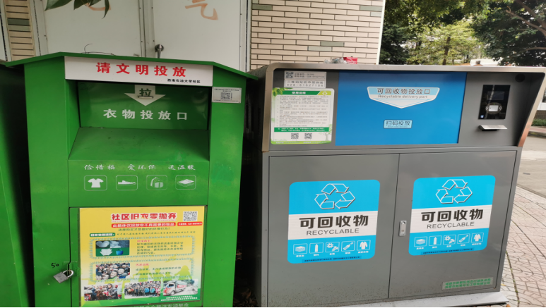 在本次活動進行過程中,調查小組采取環校內基礎設施普查的方式對廢舊衣物回收設施數量進行了統計,并分別記錄具體位置。隨后根據具體位置,調查小組安排相應人員對不同的衣物回收地點進行實地拍照,并定點觀察在校學生參與回收的周期和頻率。在初步了解情況后,小組成員針對收集數據制定訪問提綱,并派出組員對多個宿舍樓學生進行采訪調查,詢問其是否參與過廢舊衣物回收、回收利用的數量以及對于學校廢舊衣物回收的看法和建議。