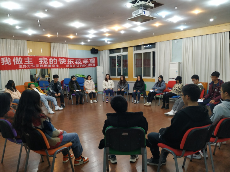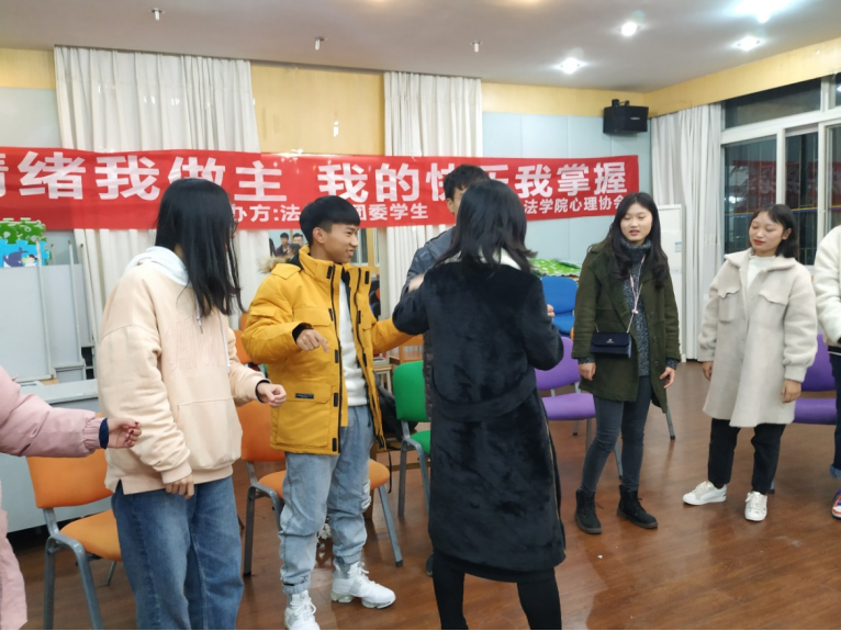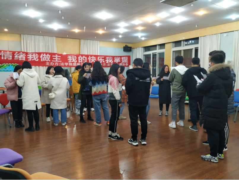 情緒是心情的晴雨表,是每個人心理狀況的外化表現。穩定的情緒狀態有利于激發學生的學習和工作熱情,提高效率,促進成長。對于大一新生而言,面臨著應對外部環境變化所帶來的自我認知調整和角色適應的挑戰。為了幫助他們以積極態度面對挑戰和適應問題,以積極的情緒體驗去幫助他們增強自我認知和角色認同,學會情緒管理,笑對人生煩惱,法學院于11月21日在博學樓A101開展了以壓力情緒體驗為主題的團輔活動。本次活動由法學院心理協會承辦,邀請我院心理輔導員肖丹老師開展團輔,2019級各班主要學生干部參與團輔。