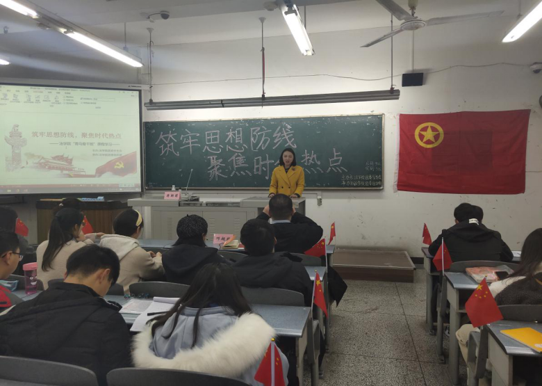 為了進一步提高同學們的思想政治素養,幫助同學們筑牢思想防線,堅定理想信念,培養同學們勇于擔當時代復興大任的精神,2019年11月27日星期三下午,西南石油大學法學院在博學樓B206舉辦了法學院“青馬骨干班”之“筑牢思想防線,聚焦時代熱點”主題課程學習。本次活動很榮幸的邀請到了西南石油大學馬克思主義學院研究生教研室主任蔣朝莉老師為大家進行以“守初心擔使命,做新時代大學生”為主題的講話。本次活動是引導同學們成為與時代同步伐、與祖國共命運、與人民共奮斗的中國特色社會主義事業的合格建設者和可靠接班人的重要一步!