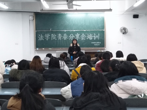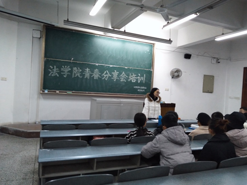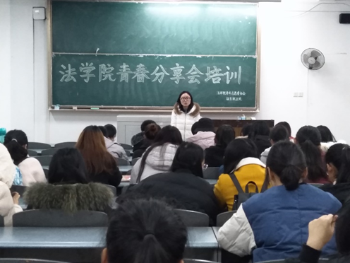 為加深法學(xué)院青春分享志愿者對我校有更深刻的認(rèn)識,提高志愿者的分享能力。法學(xué)院青年志愿者協(xié)會與招生就業(yè)處于12月19日下午在博學(xué)樓b502開展了法學(xué)院青春分享培訓(xùn)會。此次分享會培訓(xùn)邀請到了肖丹老師以及上一屆優(yōu)秀青春分享志愿者王昱涵、張瓏耀、向思與來與志愿者們進(jìn)行經(jīng)驗交流。志愿者們積極參與本次分享會培訓(xùn),活動開展情況良好。