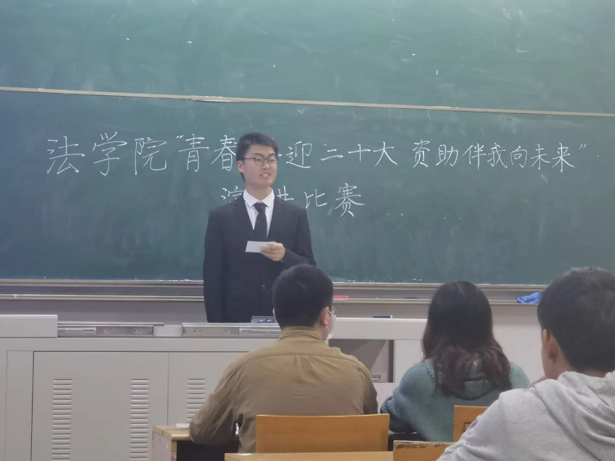 國家資助政策體系幫助貧困大學生順利圓了大學之夢,引導他們成長成為建設祖國的棟梁之才。為充分發揮學生資助的導向和育人功能,激勵廣大學生擔當時代使命,以實際行動迎接黨的二十大和省第十二次黨代會勝利召開,法學院開展了本次院級“青春喜迎二十大 資助伴我向未來”演講比賽。本次演講比賽特別邀請到藝術學院李民老師、法學院2020級輔導員肖丹老師、法學院2021級輔導員袁祥崟老師和學生會主席團分管主席張文鵬擔任評委。