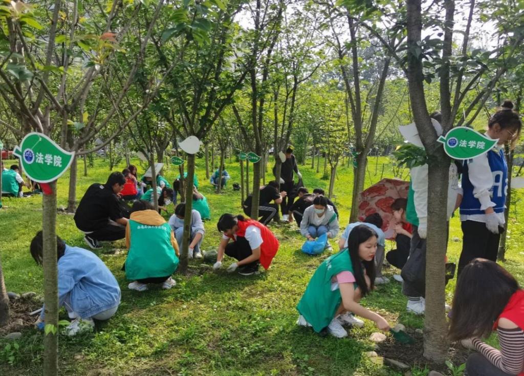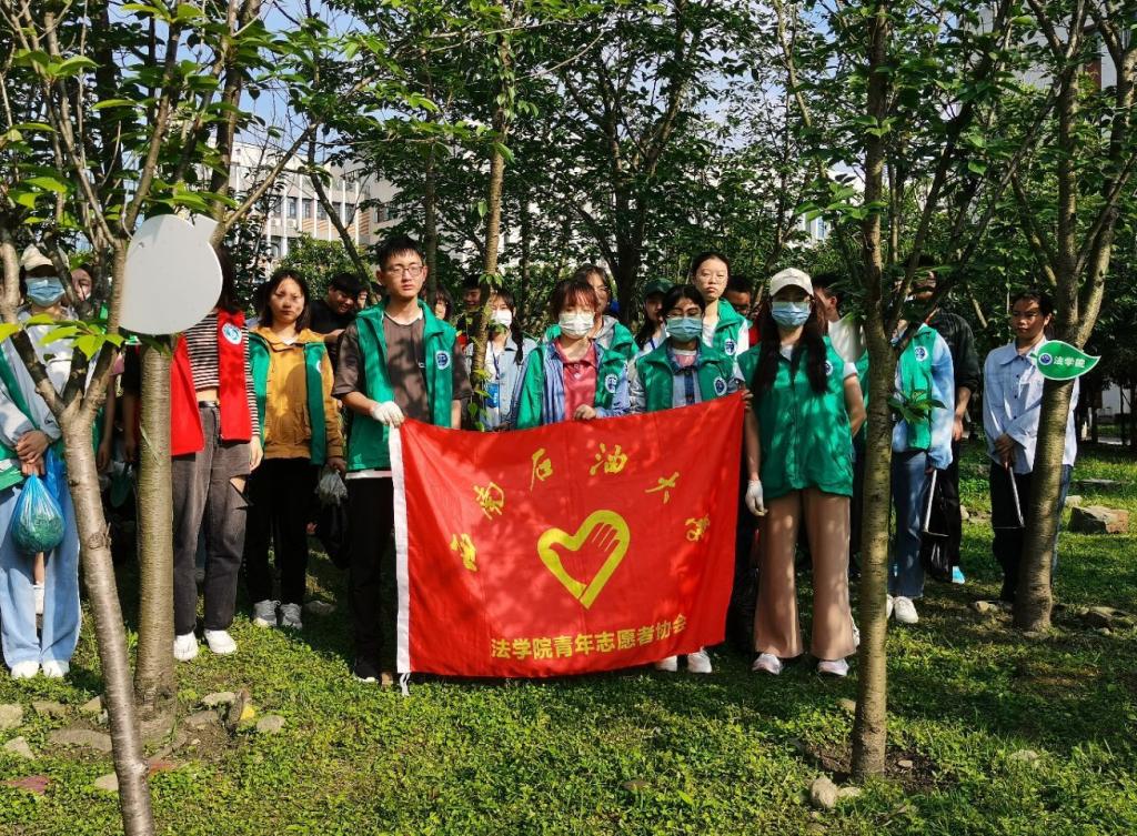 五月,空氣中夾雜著雨水的氣息,太陽漸漸探出頭來。在5月19日這個陽光明媚的日子,法學院團委青志協開展了常規的學子林養護活動。