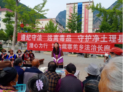 為深入貫徹習近平法治思想,推進少數民族地區法治建設,助力中國特色社會主義法治體系的構建,提高少數民族群眾法律意識,增強法治薄弱民族地區普法宣傳,西南石油大學“潛心力行,筑力藏寨羌鄉法治長廊”勵志強能實踐隊伍聯合理縣湘川情社工服務中心于2022年6月在阿壩州理縣開展了一系列普法及禁毒宣傳活動,助推藏寨羌鄉法治長廊建設。