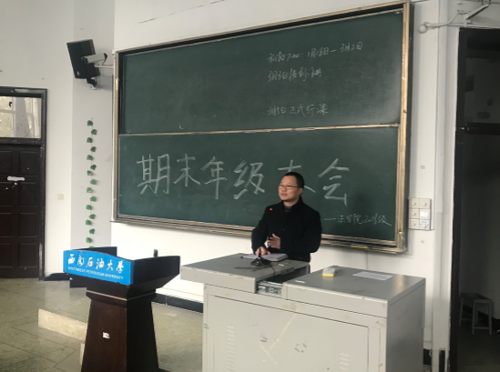 為總結本學期工作,增強師生間交流與溝通,我院于1月12日下午3點在思學樓B110召開2016級期末年級大會。本次大會由法學院團委書記、2016級輔導員黎子炯主講,2016級全體學生積極參與。會中,黎老師就紀律規范、學習生活、安全工作方面展開指導,大會取得了預期良好效果。