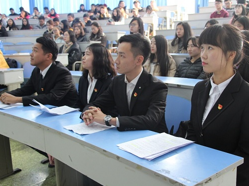 為引導我院學生自覺學習黨的十九大精神,增強其民族自豪感與責任感,法學院于12月21日下午14:30在思學樓c110開展“黨的十九大精神”主題宣講會。本次宣講會由學校“十九大”宣講團主講,法學院學生積極參與,活動反響熱烈。