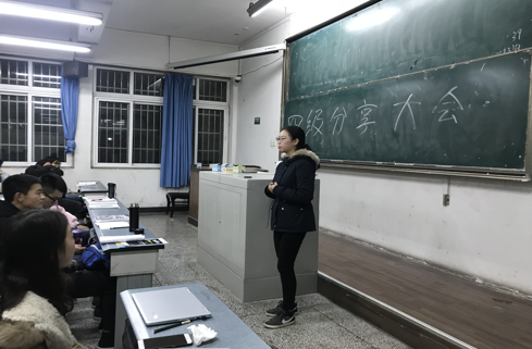 2016級杜金秋同學是本次分享會的主講人之一。她說:“考前突擊特別重要,詞匯復習是重中之重。”她建議大家充分利用手中的工具書,積累詞匯,培養語感。除此之外,我們在課余時間也可以多看外語書籍,堅持聽BBC、VOA等電臺,積極參加各類英語大賽,培養學習英語的興趣。