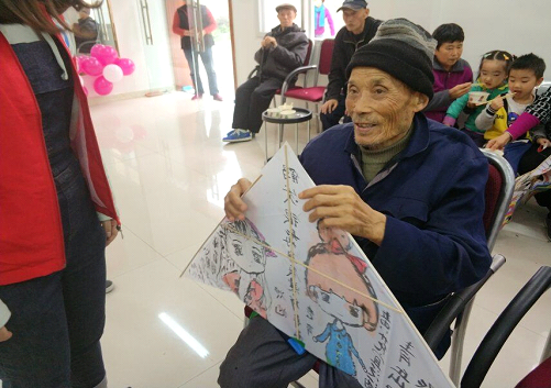 重陽節(jié)下午,委員們青志協(xié)成員一起來到怡湖社區(qū)大家分工明確,接待、聊天、音響、還有各自準(zhǔn)備的節(jié)目。從門口到房間,看著老人們的笑容洋溢,有個(gè)老人坐著輪椅笑著對(duì)我說,每次我都想看著你們這些孩子多像我的孫子啊,每次我都來。盡管爺爺腿腳不便,但是精神很好,面帶笑容,我們心中也是莫名感動(dòng)。老人們一起動(dòng)手包抄手,鍛煉手指,也算獎(jiǎng)勵(lì)志愿者。然后給老人講一些保健知識(shí),積極鼓勵(lì)老人們一起分享保健知識(shí)各有妙招,大家也獲益良多。隨后是金曲演唱,一些膾炙人口的經(jīng)典老歌回蕩在整個(gè)房間,與老人的互動(dòng)也是很成功,幾位老人也愿意上臺(tái)演唱,人老心不老。最后的環(huán)節(jié)就是贈(zèng)送我們親手制作的風(fēng)箏,承載的我們的關(guān)心祝福,老人們接過風(fēng)箏也對(duì)志愿者們寄予可深切的希望與感謝。