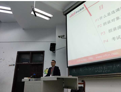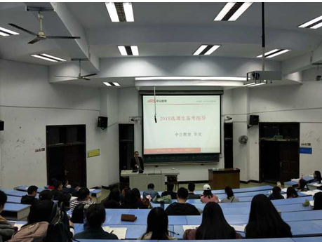 為給予我院選調生更好的備考方向指引、讓選調生們的備考更為高效,法學院于2017年11月9日19時在思學樓C110舉行了2018選調生備考指導講座。本次活動由中關教育的李靈老師主講,法學院的選調備考生們到場聆聽。