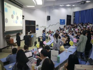 4月14日19點,在思學(xué)樓B110,“以一敵百”知識競賽決賽由輕時光樂隊彈唱的《some one like you》拉開帷幕,之后,主持人介紹應(yīng)急預(yù)案和比賽規(guī)則,嘉賓抽取幸運參賽人員,送出舞茗提供的飲品。比賽正式開始,第一輪,“擂主選拔賽”,經(jīng)過異常激烈的角逐,現(xiàn)場挑選出6位擂主。第二輪,“以一敵百”,各位擂主輪流登擂,與百人區(qū)選手同時答題,根據(jù)累積的分數(shù)高低決出勝負。活動過程中秩序井然,觀眾和選手積極、熱情,比賽參與度極高,輕時光樂隊的吉他彈唱更將現(xiàn)場氣氛推向高潮。經(jīng)過激烈的比拼,比賽最終決出一等獎一名,二等獎兩名,三等獎三名,百人區(qū)也按照分數(shù)高低選出一等獎一名,二等獎和三等獎各兩名。隨后,主持人公布結(jié)果并對脫穎而出的同學(xué)進行現(xiàn)場頒獎。創(chuàng)新的決賽形式讓每一位選手在比賽過程中全程參與,全場戰(zhàn)況激烈。