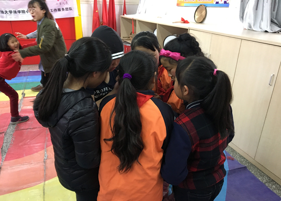 在“暗殺特務”這個熱身游戲中,每一個小組要在組員之中選取一名特務,但是不能讓其他小組發覺。在這個過程中,各小組組員盡管會爭先想要成為“特務”,但他們最終都會通過協商的方式(如“石頭、剪刀、布”)來解決他們之間的分歧。出人意料的是,他們不僅自主解決了小組內部的分歧,甚至還會用肢體語言、表情和語氣來迷惑其他小組組員。孩子們在游戲熱身過程中不僅體現了他們的表演熱情和創造力,也體現了各個小組的凝聚力。