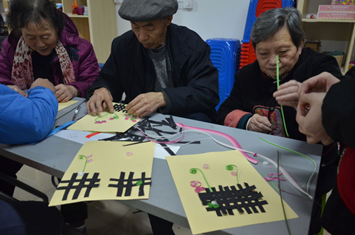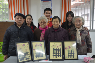 活動一開始,義工們帶領爺爺奶奶們一起合唱《南泥灣》,蓮花會所里歌聲陣陣,爺爺奶奶們精神抖擻。隨后,大家一起學習了太極,這看似簡單的鍛煉讓老人們的身體得到了舒展放松。接下來就到了本次活動的重頭戲部分――衍生畫創作。大家發揮著自己的想象力,創作出心中最滿意的作品,無論是籬笆的形狀還是枝葉花瓣的模樣,都是老人們精心設計后創作出的成果。經過一小時后,老人們相繼完成創作,并將自己的作品裱入相框。看著自己的作品,爺爺奶奶們臉上洋溢著幸福的笑容,他們從手工創作中獲得了滿足感,并為自己的作品感到無比驕傲。最后,老人們和義工們進行了合影留念,并且對義工們表達了感謝。