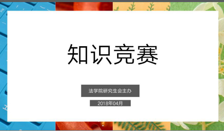 4月14日晚19:40,博學樓A503教室一片歡聲笑語,由法學院研究生們舉辦的一答到底知識競賽在此召開。此次活動由法學院本科大一宋延強主持。學院學生積極參與,全場座無虛席。