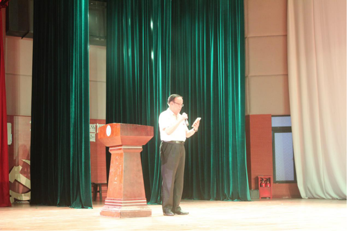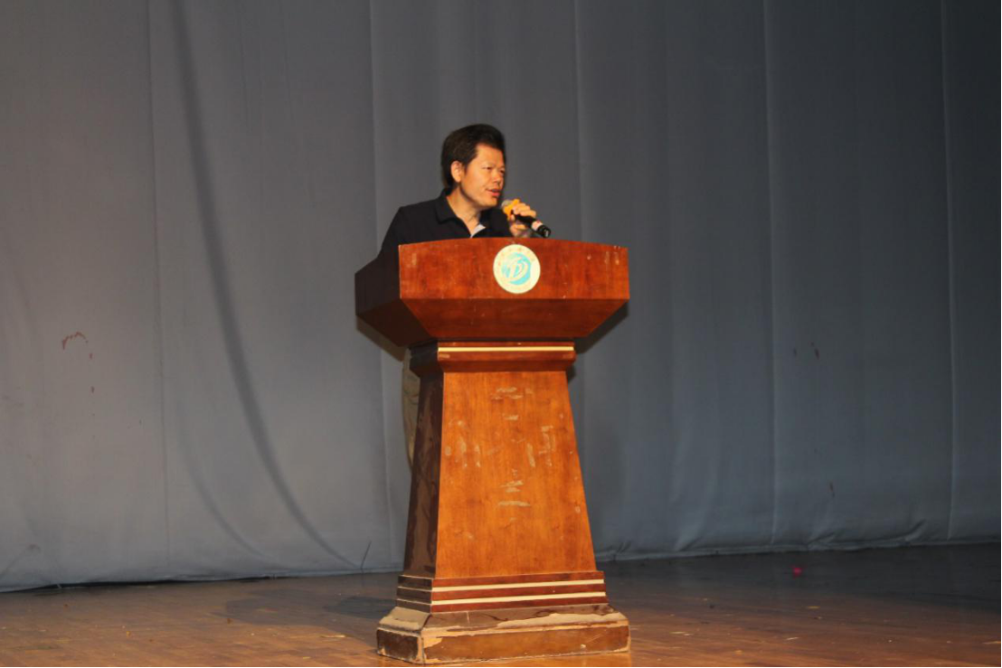 舞蹈表演結(jié)束后,法學(xué)院黨委書記蘭力平老師為宣布“革命精神熔鑄奮斗之魂 激揚青春奏響筑夢之歌”主題黨建教育系列活動正式啟動,并為其致辭。致辭中,蘭書記從“兩學(xué)一做”談起,他說:“2018年是我們學(xué)校全面深化改革、全面從嚴治黨向縱深發(fā)展的關(guān)鍵之年,“兩學(xué)一做”不僅是黨建設(shè)的需要,也是大學(xué)生黨員個人人生發(fā)展的需要。”在蘭書記看來,當(dāng)代中國的轉(zhuǎn)型為我國大學(xué)生人生事業(yè)發(fā)展提供了無數(shù)的機遇和廣闊的發(fā)展空間,這就要求我們大學(xué)生,特別是大學(xué)生黨員,不斷提高個人素質(zhì),樹立共產(chǎn)主義的遠大理想,嚴格要求自己,直面挑戰(zhàn),不忘初心,為實現(xiàn)中華民族偉大復(fù)興而不斷奮斗。