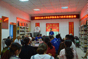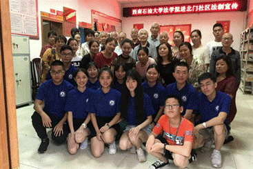 活動中,北門社區主任對實踐隊同學們的到來表示歡迎。白安平同學向北門社區的領導和居民們介紹了西南石油大學和法學院的詳細情況,并說明了實踐隊此次暑期實踐的目的。成浩銘同學和李世鑫同學向北門社區的居民們介紹了婚姻法、治安管理處罰條例的相關法律法規。