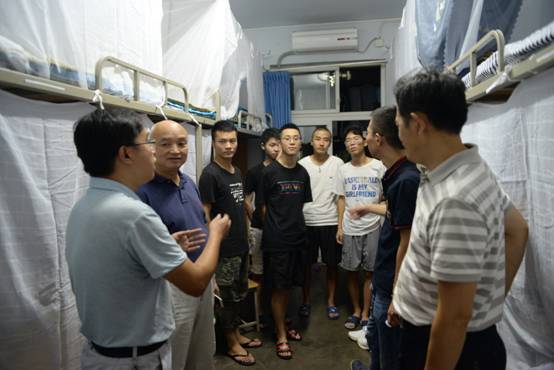 在走訪男生寢室的過程中,老師們特別關照外地同學,著重了解了他們是否適應本地的生活習慣與飲食習慣。除此之外,老師們還叮囑了同學們要相互關照,相互幫助,共同營造良好的寢室氛圍。