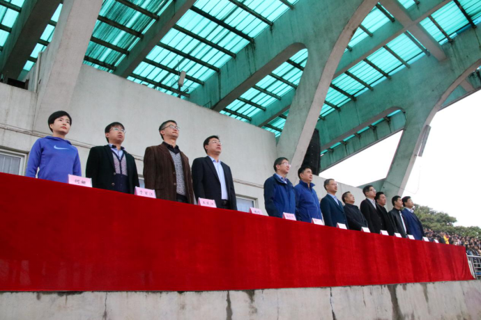 在開幕之始,國旗護(hù)衛(wèi)隊踏著矯健的步伐,扛著國旗莊重的走向了旗臺,全場齊唱國歌。升旗完畢之后,由彭小華老師致開幕詞,他說道:“參與就是成功,堅持就是勝利。”他號召同學(xué)們養(yǎng)成運(yùn)動習(xí)慣,希望同學(xué)們能夠擁有健康的體魄,擁有堅持不懈、永不放棄的體育精神。彭小華老師說道:“要在擁有競爭精神的同時保持重在參與的熱情,友誼第一,比賽第二。