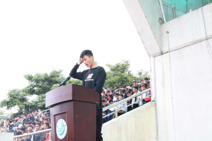 隨后運(yùn)動員代表王建同學(xué)走上了主席臺,進(jìn)行了莊重的宣誓。“做好運(yùn)動員本職工作,竭盡全力,戰(zhàn)出最好的成績。”裁判員代表宣誓道“將公平公正,履行職責(zé)”。最后,由張文衛(wèi)老師宣布2018年新生田徑運(yùn)動會正式開幕。