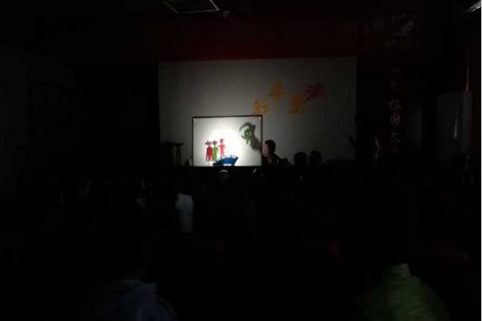 歡樂的小游戲結束后,緊接著就是第二部分——志愿者上場表演皮影小短劇,志愿者們用極富感染力的語調和活靈活現的皮影表演讓小朋友們深深地陷入了這場皮影短劇的情景中,也極大地激發了小朋友們對皮影戲的興趣。