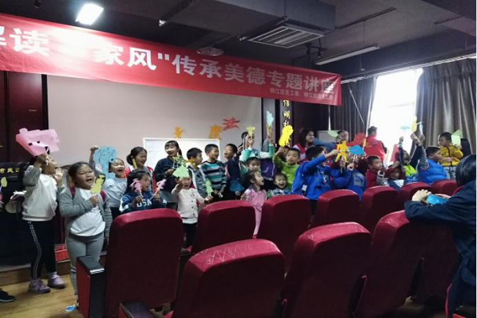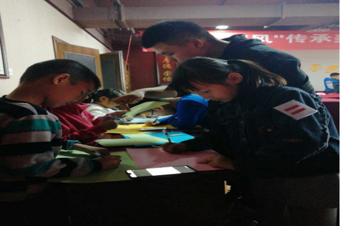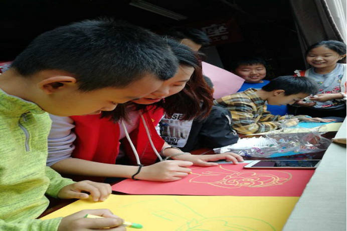 神秘而有趣的皮影戲帶來的是小朋友們對制作皮影的渴望,而恰巧第三部分就為志愿者引導小朋友們制作皮影并排練一部簡短的皮影戲。在觀看了志愿者們的皮影短劇之后,在志愿者的幫助之下,小朋友們開始熱情高漲地制作他們自己的皮影,每一個小組的小朋友們都相互幫助,最終完成了自己的皮影并且開始小組皮影展示,每個小組的小朋友們都積極踴躍地展示著自己的皮影,而其他的小朋友和家長們都給予了響亮的掌聲和鼓勵,這讓小朋友們在實踐中感受到皮影的有趣和魅力。