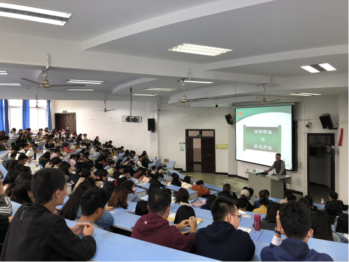 活動伊始,曾學長具體介紹了法律職業(yè)與學習方法的相關問題,說道:“法律職業(yè)是指受過專門的法律專業(yè)訓練、具有嫻熟的法律技能與法律倫理的法律事務崗位從業(yè)人員所構成的共同體。”這要求同學們刻苦學習,積極向上,打好知識基礎。我國正處于社會主義初級階段,全面建成小康社會進入決定性階段,他提出,在現在的形勢中,依法治國地位更突出、作用更重大。