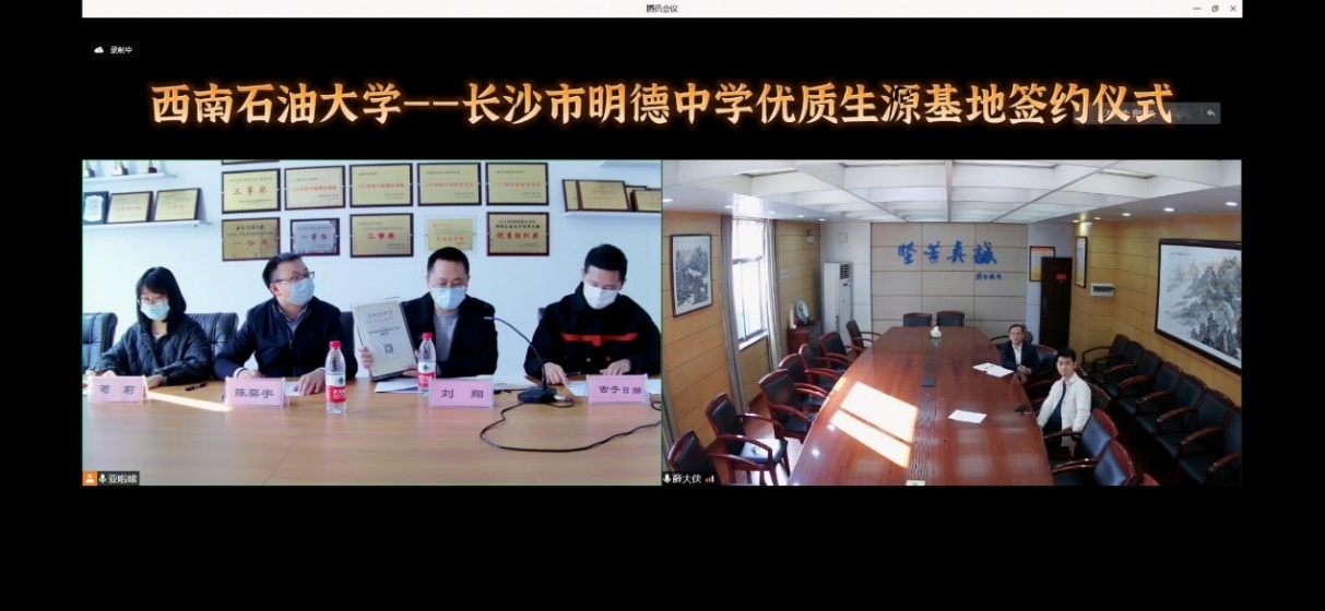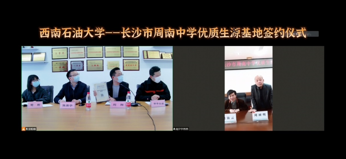 11月10日-11日,計算機科學學院黨委副書記、紀委書記劉翔,學校招生辦公室主任陳奕宇,湖南省招生工作聯系人、計算機科學學院團委副書記吉子日赫等,通過學院多屏交互設備,以“屏對屏”的方式分別與湖南省長沙市明德中學、長沙市周南中學、長沙市南雅中學和長沙外國語學校進行了深度交流,簽定了優質生源基地共建協議,向4所中學授牌“西南石油大學優質生源基地”。